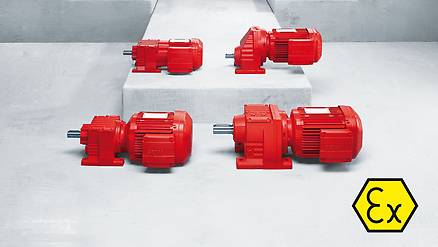 R..EDR.. helical gearmotors fully comply with the ATEX standard. In II2GD and II3GD versions, they offer the ideal combination of performance and explosion protection.